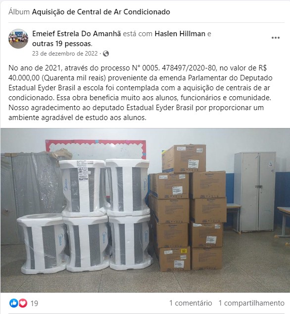 Postagem feita no Facebook celebra aparelhos, mas falta de instalação completa mais de um ano - Foto: Reprodução de tela