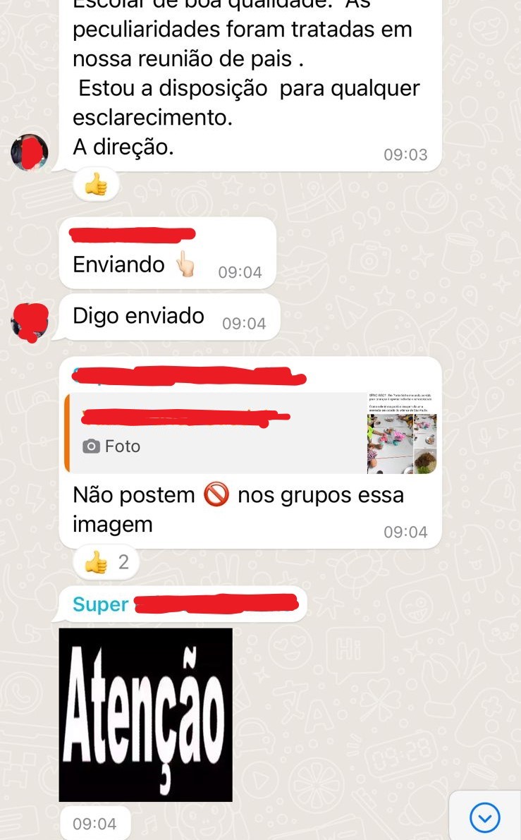 E completa: “Todos sabem disso. As peculiaridades foram tratadas em nossa reunião de pais. Estou à disposição para qualquer esclarecimento”.