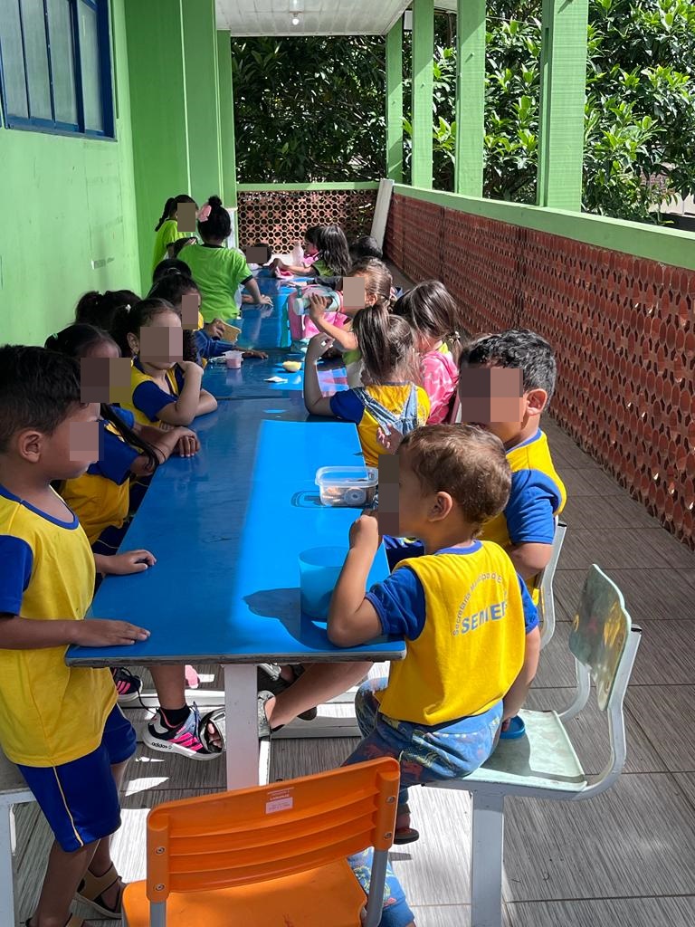Crianças lanchando no sol na Creche Marise Castiel - Foto: Rondoniaovivo