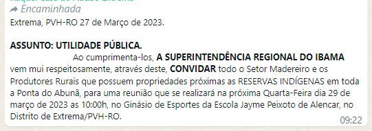 “O que será tratado? Qual a relevância para os munícipes? Esse comunicado foge ao padrão de comunicação do Governo Federal na escrita, a ausência do timbre no comunicado, Superintendência Regional do Ibama, onde não existe Superintendência ‘Regional’ na estrutura do Ibama, quem subscreve? Há uma informalidade e, sobretudo, a ausência da pauta prévia dos assuntos a serem apresentados e discutidos”, ressaltou ele.