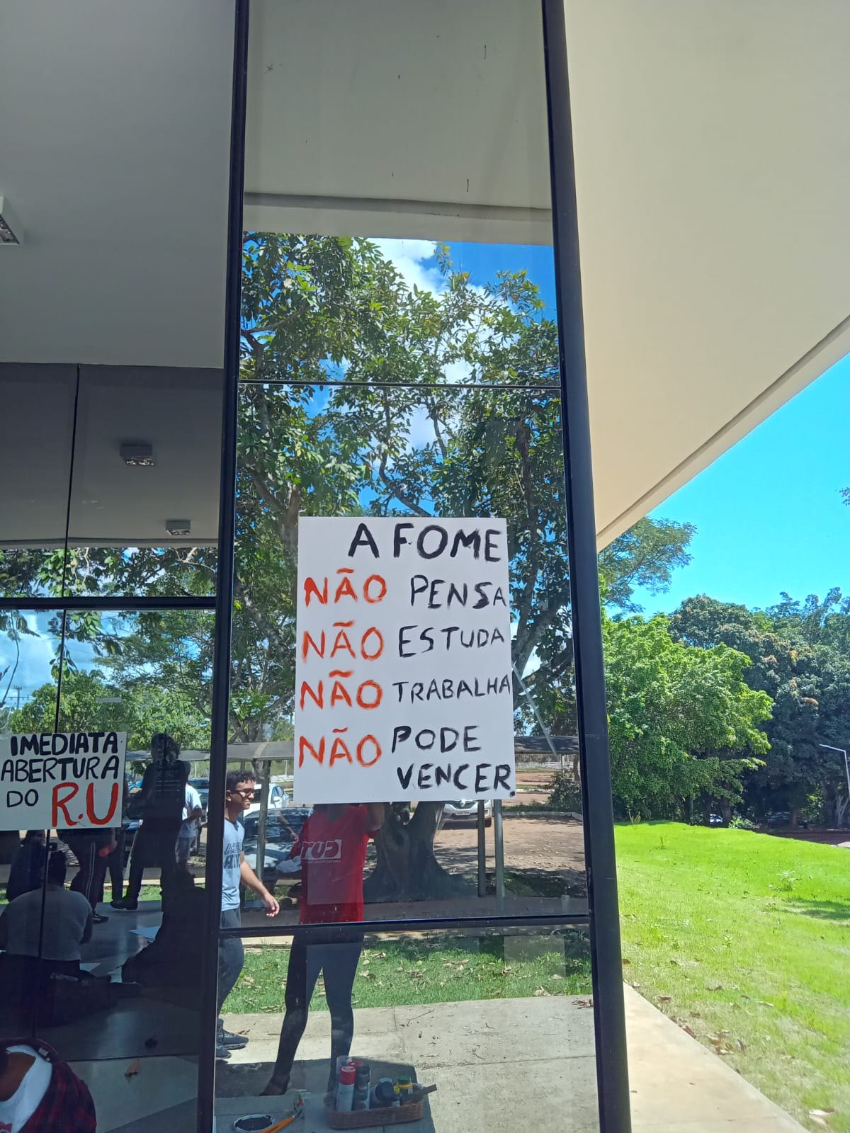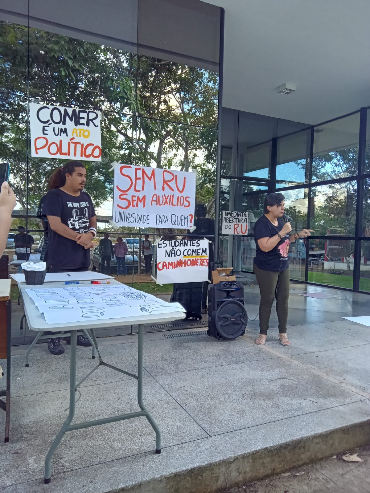 “A fome no Brasil é uma causa política e não é diferente quando ela chega a uma universidade federal. A universidade é um local de resistência, que por muitos anos, foi lugar de formar os filhos da burguesia. A falta de ônibus, a falta de RU, de segurança e o sucateamento da UNIR nada mais é do que o plano político para que somente a burguesia tenha acesso a educação e a ciência”, disse Vitória Carvalho, acadêmica de história, que participou do “marmitaço”.