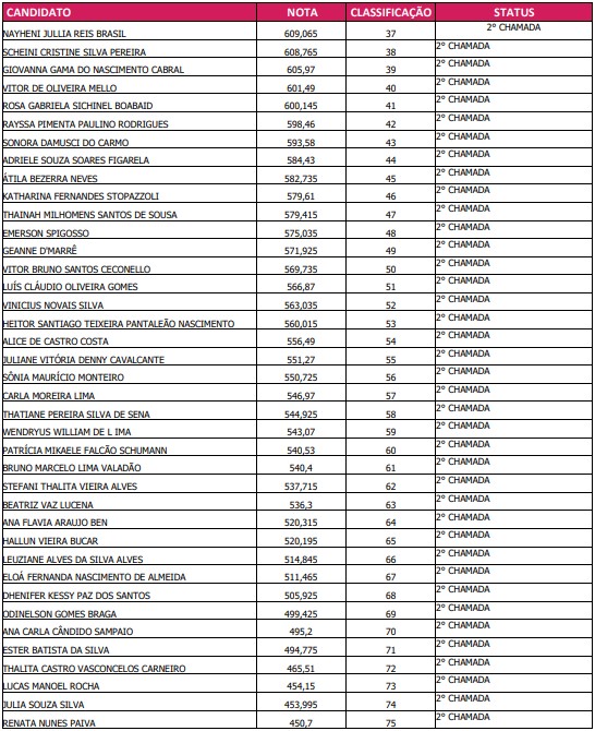 Lista de aprovados na 1ª chamada no curso de medicina do centro universitário São Lucas conforme edital nº 02/2022