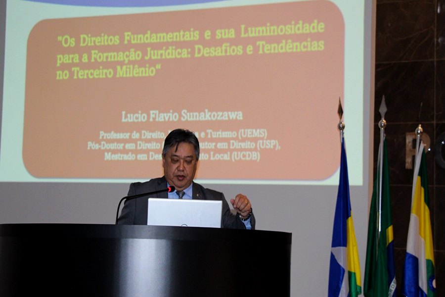 A Universidade Federal de Rondônia (UNIR) realizou na noite da última quarta-feira (21) a aula inaugural do Curso de Direito do Campus de Vilhena. Realizada no salão nobre da Câmara Municipal, a aula foi uma palestra sobre o tema “Os direitos fundamentais e sua importância na formação jurídica”, proferida pelo professor doutor Lúcio Flávio Joichi Sunakozawa (UEMS) aos alunos da primeira turma e demais participantes.