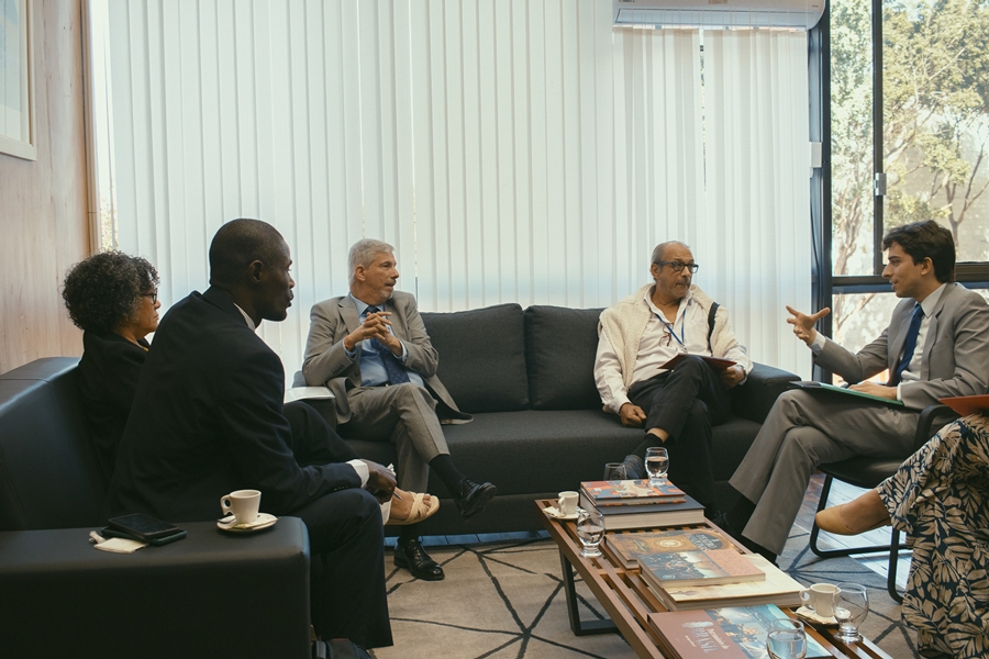 Os Embaixadores do Ministério das Relações Exteriores do Brasil, Laudemar Aguiar, João Macedo em companhia de dois secretários da Embaixadora Gisela Figueiredo e o responsável por pareceres consulares Marcelo Carneiro, receberam na manhã desta terça-feira (19), o Diretor da S&S intercâmbio Brasil , o haitiano Samuel Dorvilus e a ex-senadora da república Fátima Cleide (PT) nos compartimentos do Itamaraty para assegurar a promoção educacional dos cidadãos haitianos que desejam contribuir na melhoria do Índice de Desenvolvimento Humano do povo negro em território brasileiro, na capital do Estado de Rondônia, Porto Velho (RO).