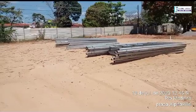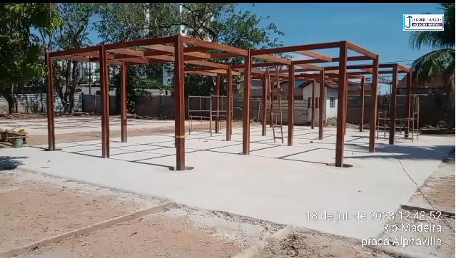 “Playground e pergolado retangular prontos. Concluindo estação de treinamento e academia. Obra da praça Alfaville está sendo executado os serviços (SIC)*. Quadra de areia pronta. Alambrados do campo de futebol com previsão de início de montagem na quarta-feira (19). Excelência a obra está em todo vapor”.