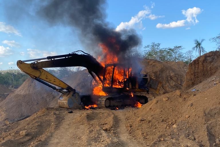 No local, foram destruídas escavadeiras, motores estacionários e mil litros de combustível, além da apreensão de uma arma de fogo. Também houve o cumprimento de um mandado de busca na região, no âmbito de inquérito policial que investiga os responsáveis por crimes ambientais, pela extração ilegal de minérios e associação criminosa, dentre outros.