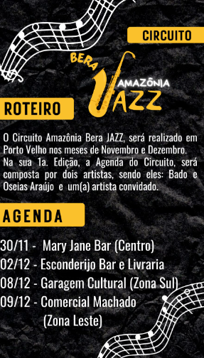 O Circuito Amazônia Bera Jazz teve início na última quinta-feira(30), e é um evento que merece todo o apoio. À frente desse projeto está o músico e compositor Bado, que é uma marca regional de qualidade musical. Prestigiem! Veja a programação: