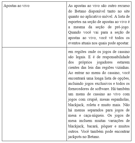 As apostas em vários eventos esportivos ou jogos de cassino podem ser feitas por usuários registrados que tenham dinheiro em suas contas on-line. Na seção de apostas esportivas, o jogador encontra o mercado e clica nas probabilidades à esquerda, especifica o tamanho da aposta, estima os ganhos potenciais e clica no botão Apostar agora. Se o jogador quiser apostar em tempo real no cassino on-line Betano, ele seleciona a guia apropriada e vai para a sala de jogos de mesa ou inicia o caça-níqueis desejado. Para obter resultados na seção de apostas esportivas, o jogador precisa aguardar a conclusão do evento selecionado anteriormente. Se um jogador fizer apostas ao vivo no Betano Casino e ganhar, ele receberá os ganhos em sua conta no final da sessão de jogo ou após o término da rodada de caça-níqueis. Se os apostadores tiverem feito tudo corretamente, no caso de uma vitória, eles receberão o dinheiro em suas contas após o término do evento. A aposta mínima no Betano é de R$ 0,50. Para retirar os ganhos do cassino, os jogadores devem fazer a solicitação na seção apropriada.