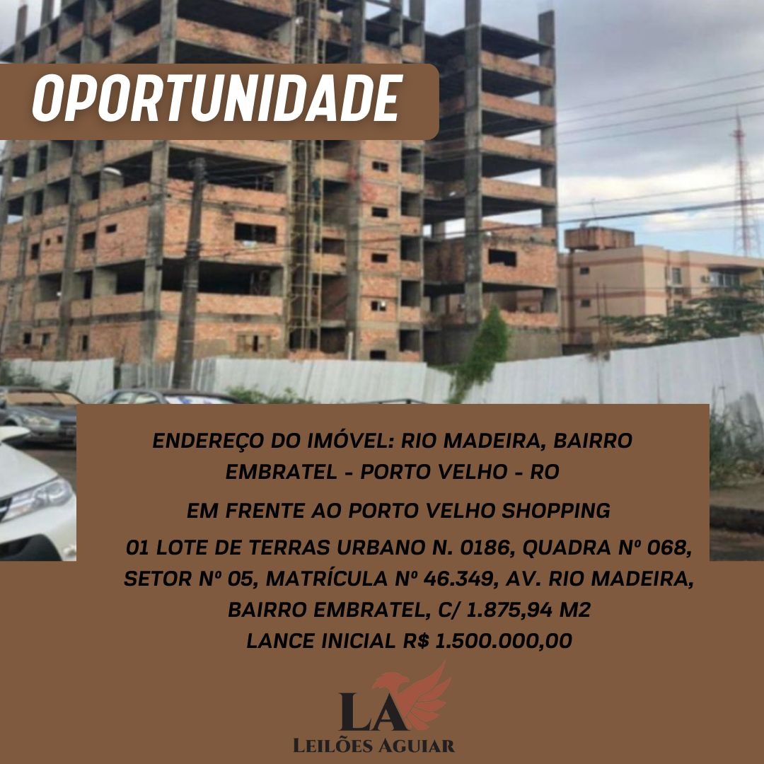 Um prédio residencial localizado na avenida Rio Madeira, no bairro Embratel, em frente ao Porto Velho Shopping, na capital, irá a leilão no próximo dia 12. A obra foi iniciada há alguns anos e por uma série de circunstância não foi terminada. Devido a isso, estará sendo colocada à venda pela Justiça, e a organização do leilão está sob a responsabilidade da