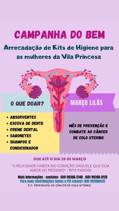 Em sintonia com o Março Lilás, mês dedicado à conscientização e prevenção do câncer do colo do útero, a Faculdade São Lucas lançou a "Campanha do Bem", uma iniciativa voltada para arrecadar kits de higiene destinados a mulheres em situação de vulnerabilidade na Vila Princesa, na capital de Porto Velho.