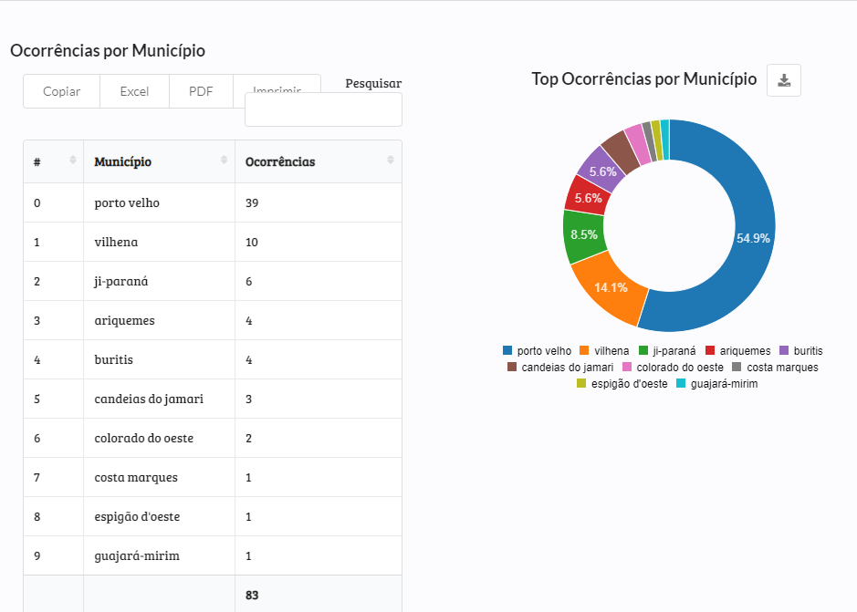 Falando em violência, o Observatório Estadual de Segurança Pública, registrou do dia 1º de janeiro até 29 de fevereiro, em todo o Estado de Rondônia, 83 assassinatos, sendo 4 feminicídios e 2 latrocínios(roubo seguido de morte). Esses são os últimos dados disponíveis. Nesse período, Porto Velho aparece no topo com 39 mortes violentas e, a um dia pacata Vilhena, vem em segundo com 10 assassinatos. É muito homicídio para um Estado com menos de 2 milhões de habitantes. Veja aqui !