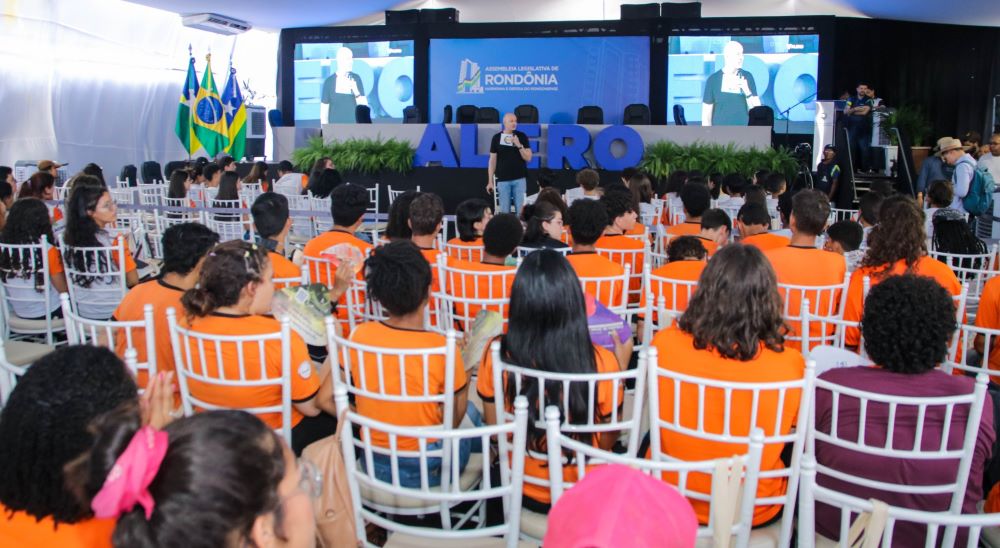 Com o tema “A vida é um jogo”, o ex-jogador da Seleção Brasileira de Vôlei e palestrante, Tande, ministrou palestra na tarde desta quarta-feira (22) no estande da Assembleia Legislativa (Alero), no Centro Tecnológico Vandeci Rack, durante a 11ª edição da Rondônia Rural Show Internacional. O evento, promovido pela Escola do Legislativo, contou com a participação de alunos das Escolas Estaduais de Ensino Fundamental e Médio Alejandro Yague Mayor e Ensino Médio Jovem Gonçalves Vilela, em Ji-Paraná.