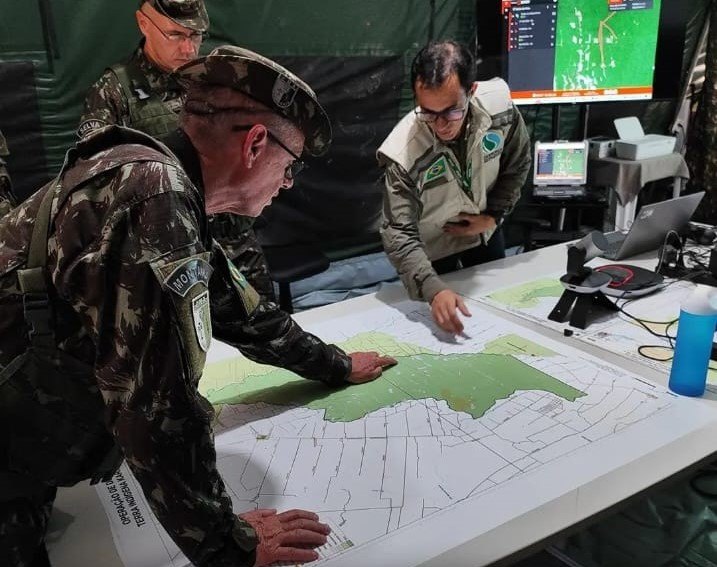 Visando inspecionar as capacidades logísticas disponibilizadas aos efetivos que estão sendo empregados na desintrusão da Terra Indígena Karipuna, o Comandante Militar da Amazônia, general de Exército Ricardo Augusto Ferreira Costa Neves, acompanhado do Comandante da 17ª Brigada de Infantaria de Selva, General de Brigada DIÓGENES DE SOUZA GOMES, deslocou-se para a Base de Operações montada pelo 17º Batalhão Logístico de Selva, no dia 18 de junho de 2024.