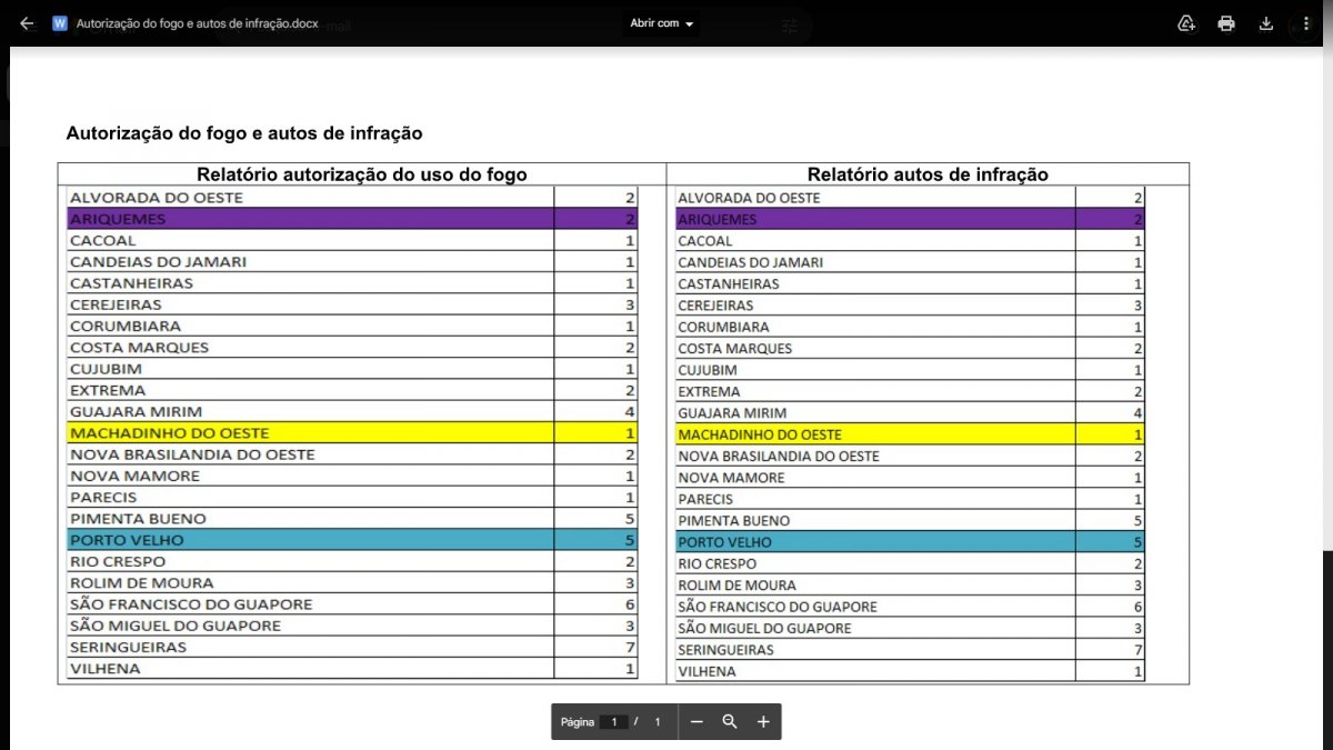 Os dados foram cedidos pela pasta ao Rondoniaovivo. No relatório da Sedam, que compreende 22 cidades além da capital, Seringueiras se destaca como o município que mais teve infrações registradas bem como autorizações lavradas - sete em cada parâmetro.