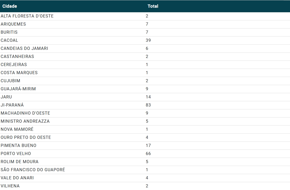 Entre os municípios o destaque está Ji-Paraná que já recebeu 83 denúncias, seguido da Capital Porto Velho que soma 66. Cacoal aparece em terceiro lugar, com 39 registros.