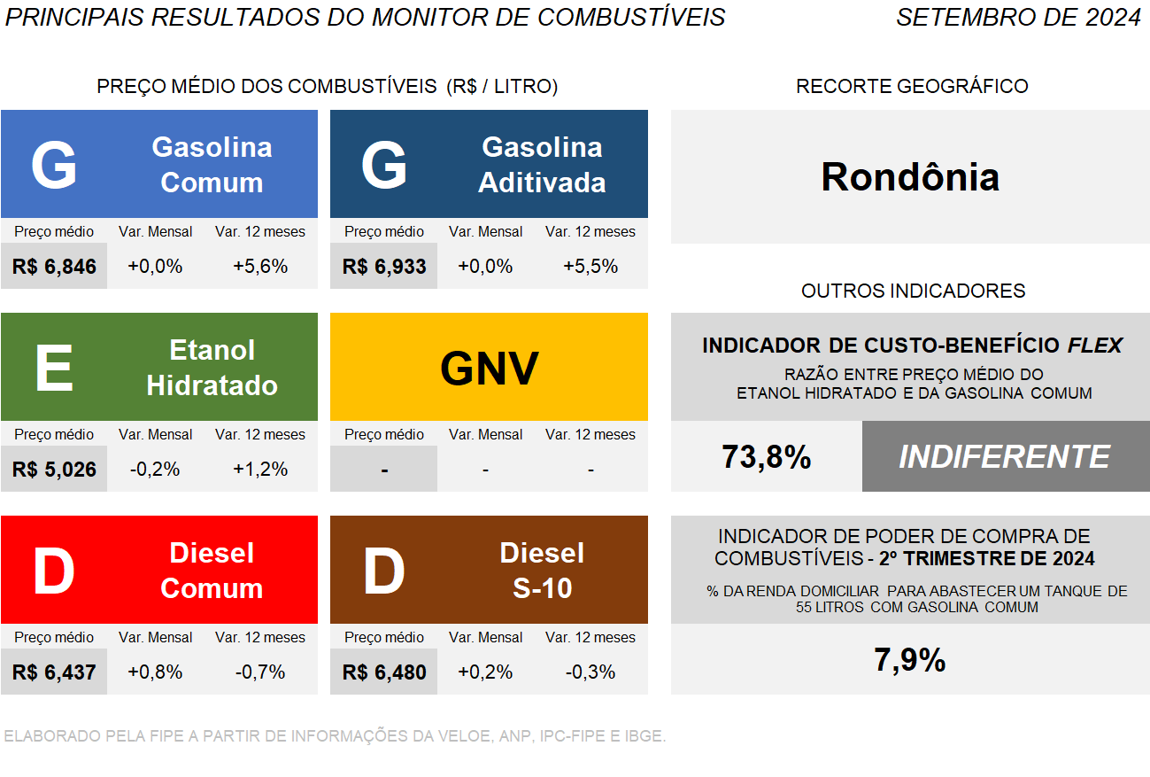 Na análise da região Norte, quatro dos seis combustíveis registraram aumento nos preços médios, com destaque para a gasolina comum, que alcançou o maior preço médio do país, a R$ 6,593, representando um crescimento de 3,9% nos últimos 12 meses. Além disso, a gasolina aditivada também apresentou alta de 0,4% no último mês e de 4,8% em um ano. Em contrapartida, o diesel S-10 registrou uma queda de 0,2% no mês de setembro e de 2,0% nos doze meses anteriores.