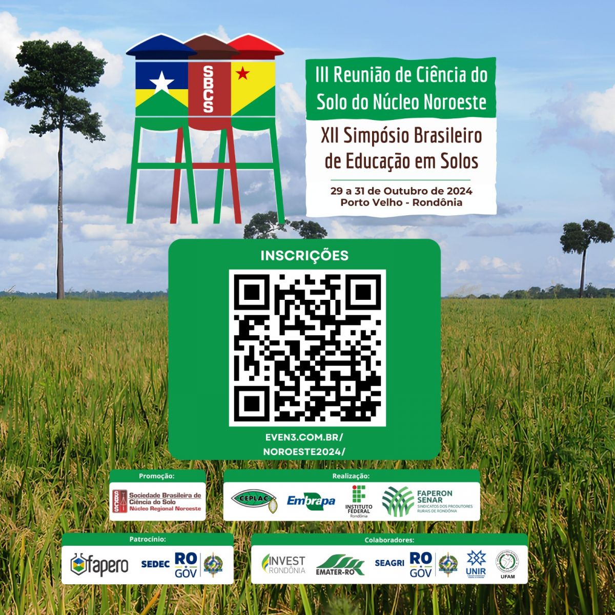 O Sistema Faperon/Senar, em parceria com a Sociedade Brasileira de Ciência do Solo, Comissão Executiva do Plano da Lavoura Cacaueira (CEPLAC), Empresa Brasileira de Pesquisa Agropecuária (Embrapa) e o Instituto Federal de Rondônia (IFRO), realizará, entre os dias 28 e 31 de outubro, em Porto Velho, a III Reunião de Ciência do Solo do Núcleo Noroeste (RCSNO) e o XII Simpósio Brasileiro de Educação em Solos (SBES).
