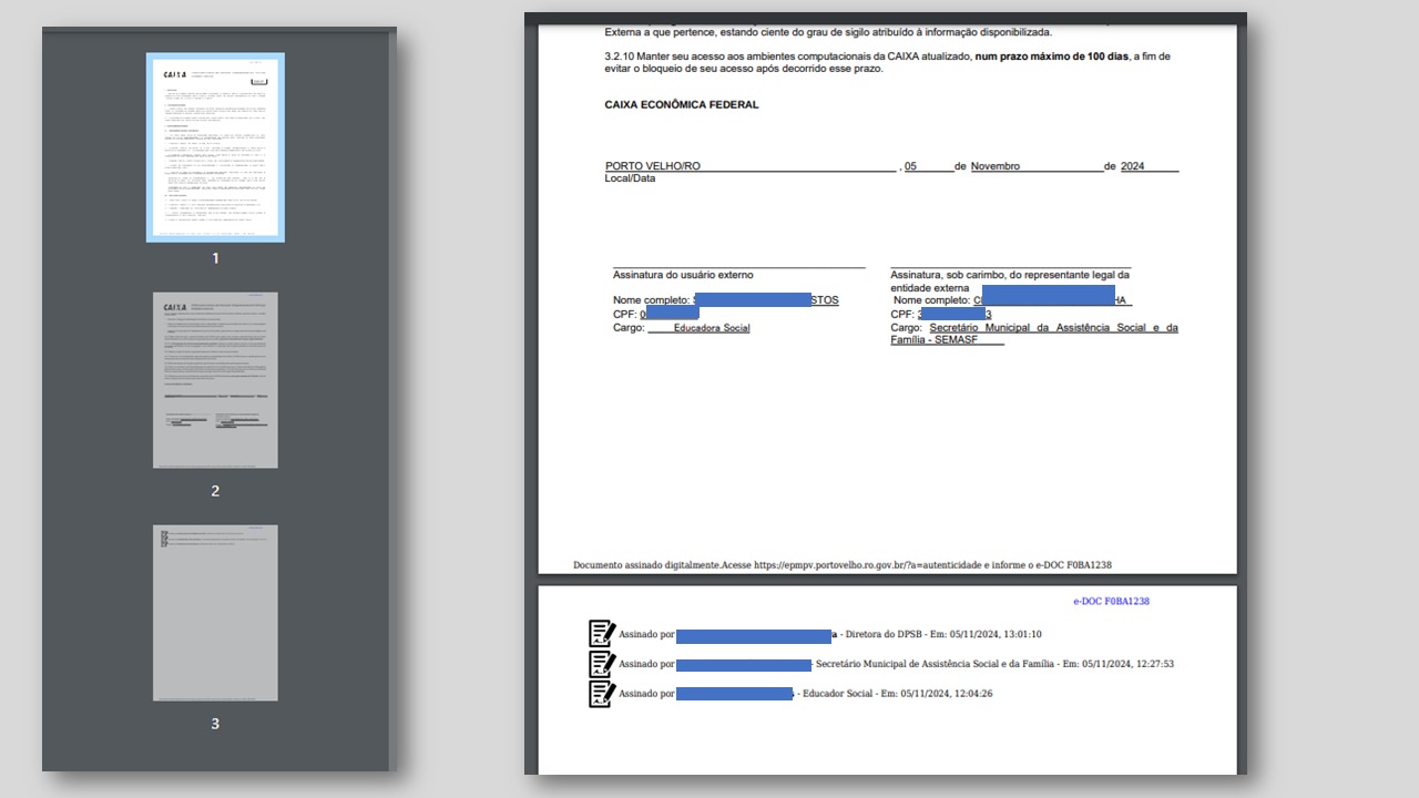 Após a primeira reportagem sobre o caso, o secretário da SEMASF f transferiu o acesso de sua senha master para uma servidora que exerce a função de educadora social. Esse procedimento é feito no sistema da Caixa Econômica Federal e foi assinado eletronicamente no SEI pelo Secretário Municipal de Assistência Social e da Família, em 05/11/2024, às 12h27:53. A reportagem foi veiculada no mesmo dia às 09:03.