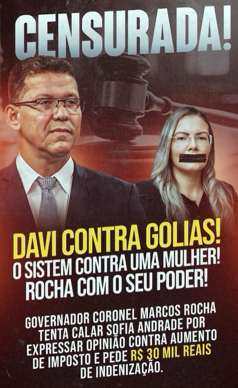 Fogo amigo! Essa expressão é americana e foi cunhada na Guerra do Vietnã, na década de 60, para designar ataques em que, por erro de informação ou localização, eles se atacavam entre si. Pois, assim podemos dizer da sentença judicial, divulgada na última semana, contra a vereadora Sofia Andrade(PL) que foi condenada a pagar R$ 20 mil por danos morais ao governador Marcos Rocha(União Brasil). A ação foi movida devido a um vídeo publicado no Instagram, no dia 14 de outubro de 2023, onde ela criticou o aumento do ICMS, feito pelo governo do Estado. Nas imagens, Sofia não poupou palavras, Marcos Rocha foi chamado de "sorrateiro", "covarde", "palhaço/palhaçada", "dissimulado", "traidor" e "vil". Ela fez um post nas redes sociais dela onde, baseando na Bíblia, dizia que era 'Davi contra Golias'.