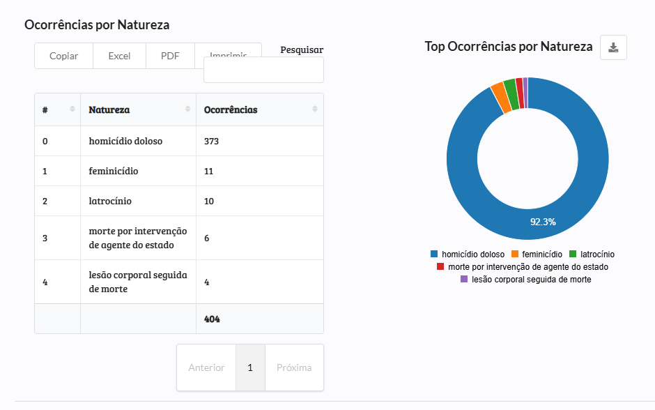 Rondônia registrou em 2024, mais de um assassinato por dia. Segundo os números do Observatório Estadual de Segurança Pública, foram 404 mortes violentas no ano passado. Desses, 373 foram classificados como homicídios dolosos(quando há a intenção de matar); 11 feminicídios; 10 latrocínios(roubo seguido de morte); 6 mortes por intervenção de agentes do Estado; e 4 lesões corporais seguidas de morte. Os três municípios que mais registraram esses crimes violentos foram: Porto Velho(153); Vilhena(48); e Ariquemes(28).