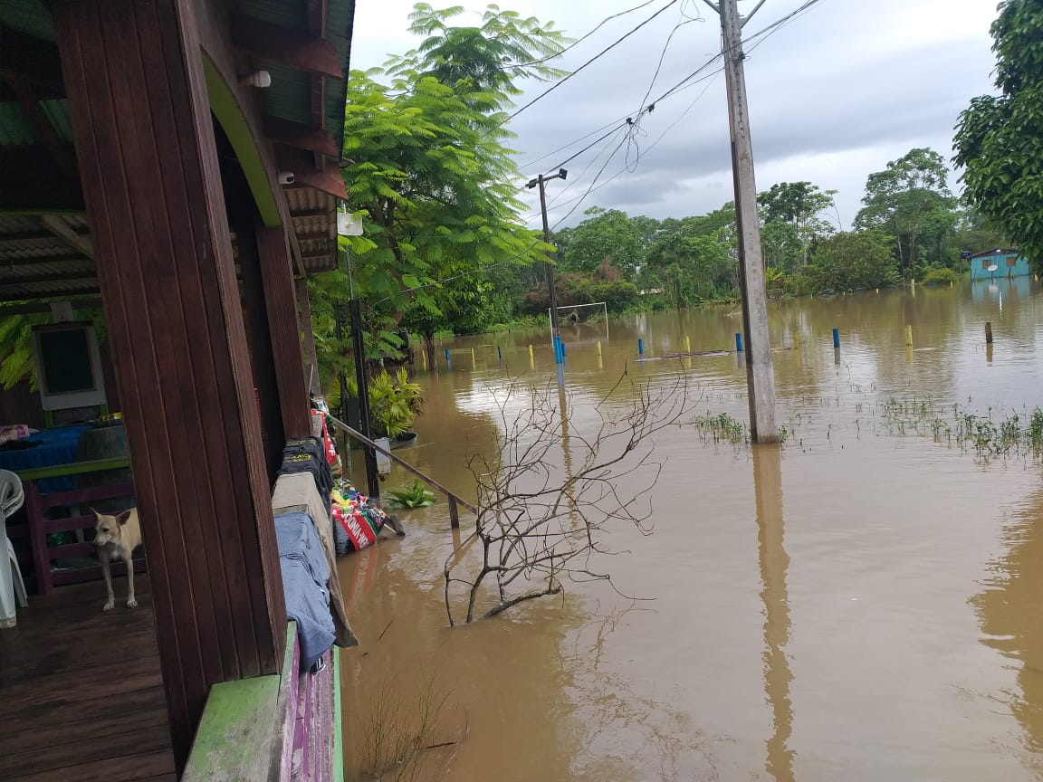 As passarelas, que normalmente são usadas pelos moradores para se locomover entre as áreas mais altas e baixas, estão submersas, dificultando ainda mais a circulação. A igreja local e várias casas foram cercadas pela água, deixando as famílias em situação de vulnerabilidade.
