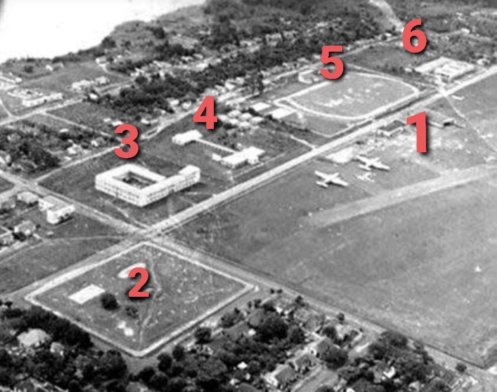 Trecho da rua Herbert de Azevedo fechado pela Aeronáutico no centro de Porto Velho e foto antiga do entorno do antigo aeroporto do Caiari