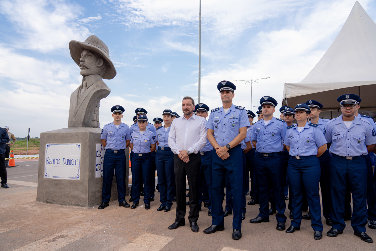 Solenidade de inauguração do busto de Santos Dumont, no início da avenida que tem o mesmo nome