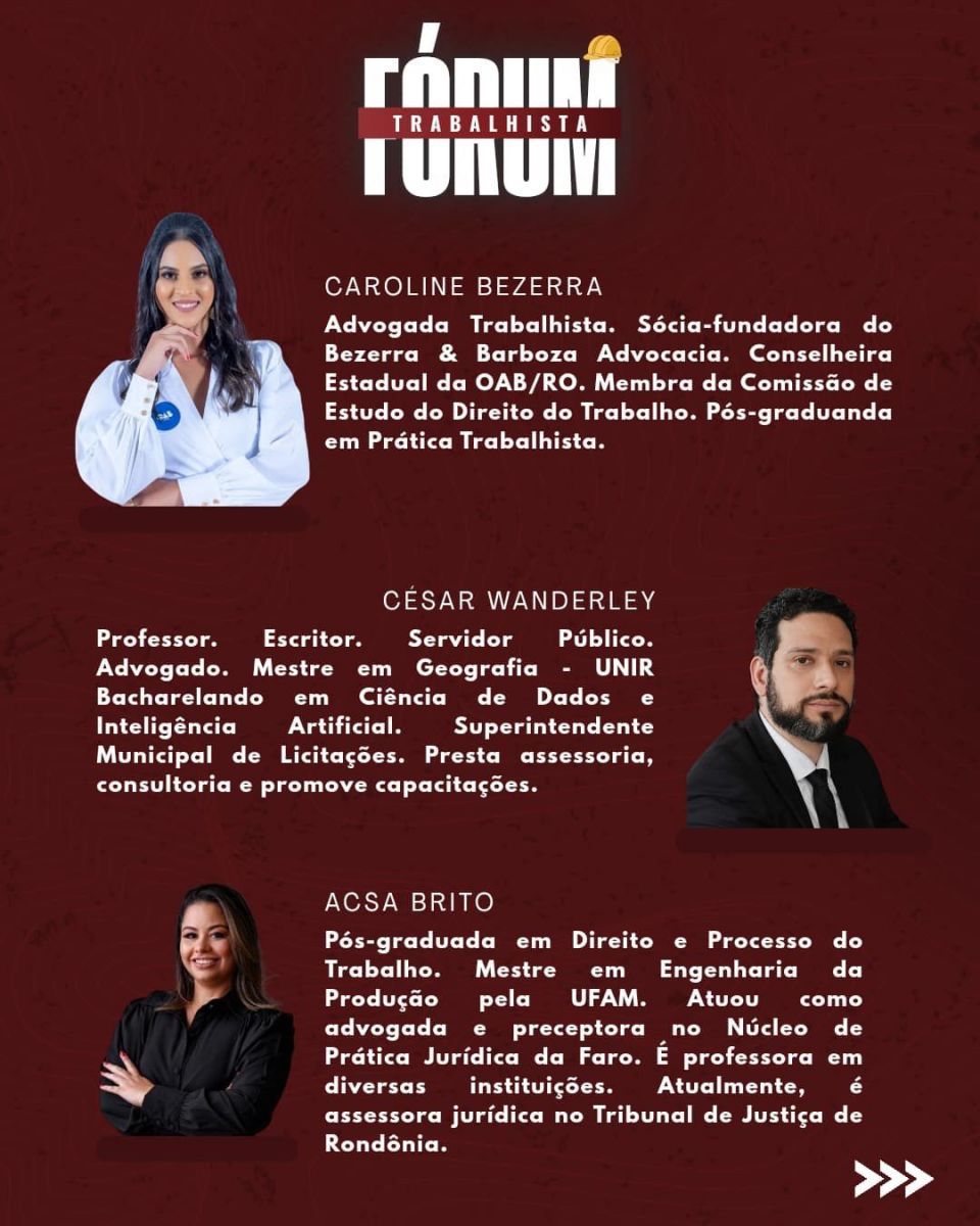 A Liga Acadêmica de Ciências Jurídicas de Rondônia (LACJRO) prepara o “Fórum Trabalhista - Novas Formas de Contratação de Trabalho: Fraudes e Aspectos Jurídicos, Processuais”, evento que acontecerá no dia 7 de junho, das 9h às 17h, reunindo especialistas, acadêmicos e profissionais do Direito para debater as transformações nas relações de trabalho.