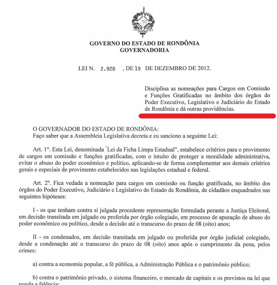 3. Consequências sob a Lei da Ficha Limpa de Rondônia