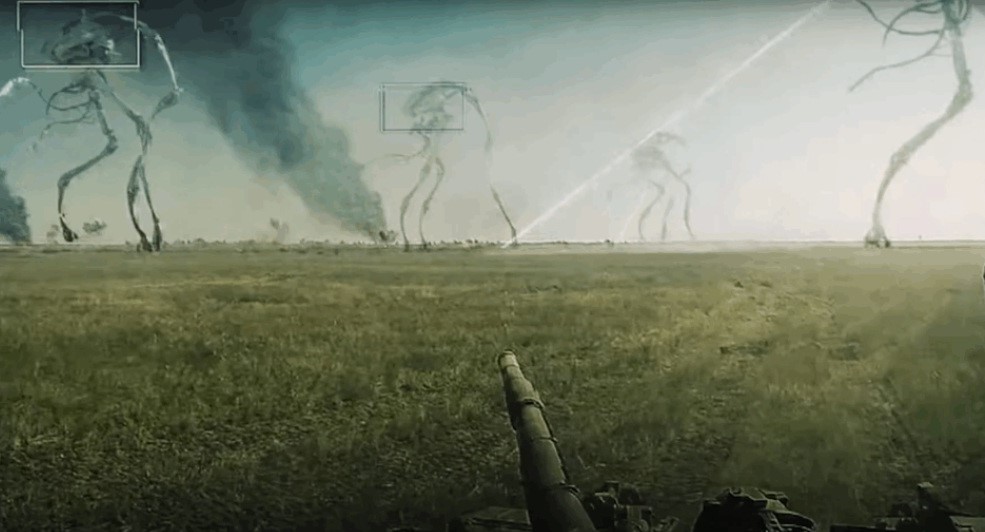 Temos a noção de que as naves Tripod estão destruindo tudo, tomando conta de centros comerciais, devastando a população, enquanto isso o personagem central está numa sala com ar-condicionado, cheia de monitores e controles, conseguindo ter uma noção de como debelar essa invasão.
