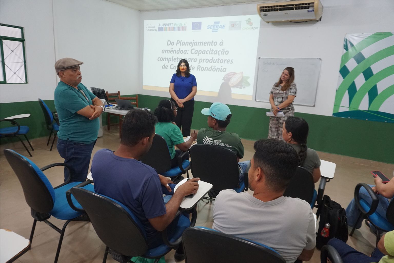 A ação integra o projeto Rota do Cacau Sustentável, desenvolvido pela empresa Al-Invest Verde, com apoio da União Europeia. A iniciativa foi realizada no Sindicato dos Produtores Rurais de Ouro Preto do Oeste, reunindo produtores, técnicos e representantes do setor cacaueiro de diversas regiões do estado.