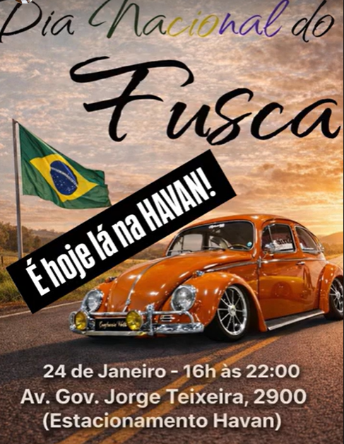 Um programa para o sábado(24) em Porto Velho é ir ver a exposição dos lendários fuscas. Hoje é celebrado o Dia Nacional do Fusca. Esse veículo que carregou gerações e que a simpatia fez com que conte com vários clubes de donos de fuscas espalhados pelo mundo. Em Porto Velho não é diferente e para marcar a data fuscas de vários anos estarão em exposição. O evento começa às 16h e vai até às 22h, no estacionamento da loja Havan, na avenida Jorge Teixeira. Vá e leva a família!