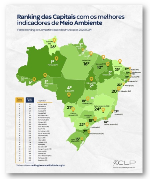 Com peso de 5,9% no Ranking de Competitividade, o pilar de Meio Ambiente destaca que investir em preservação e recuperação ambiental não é apenas uma pauta ecológica, mas também um fator decisivo para o futuro econômico e social das cidades.