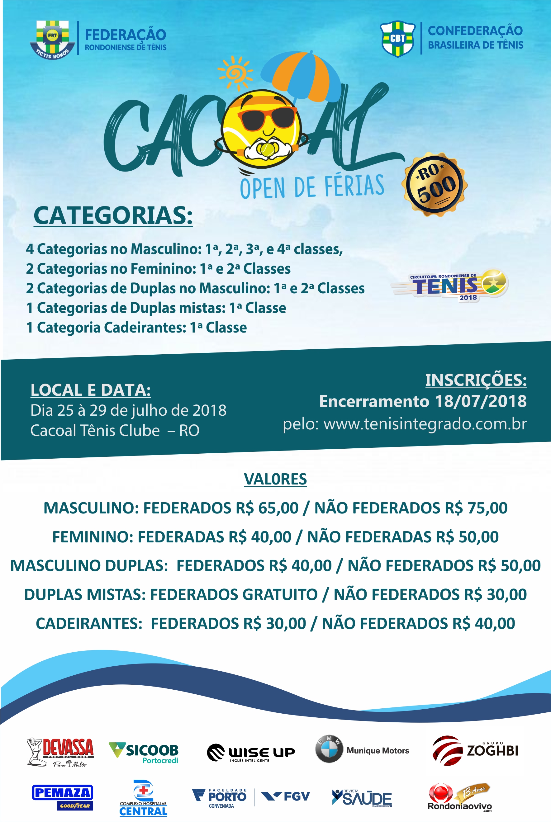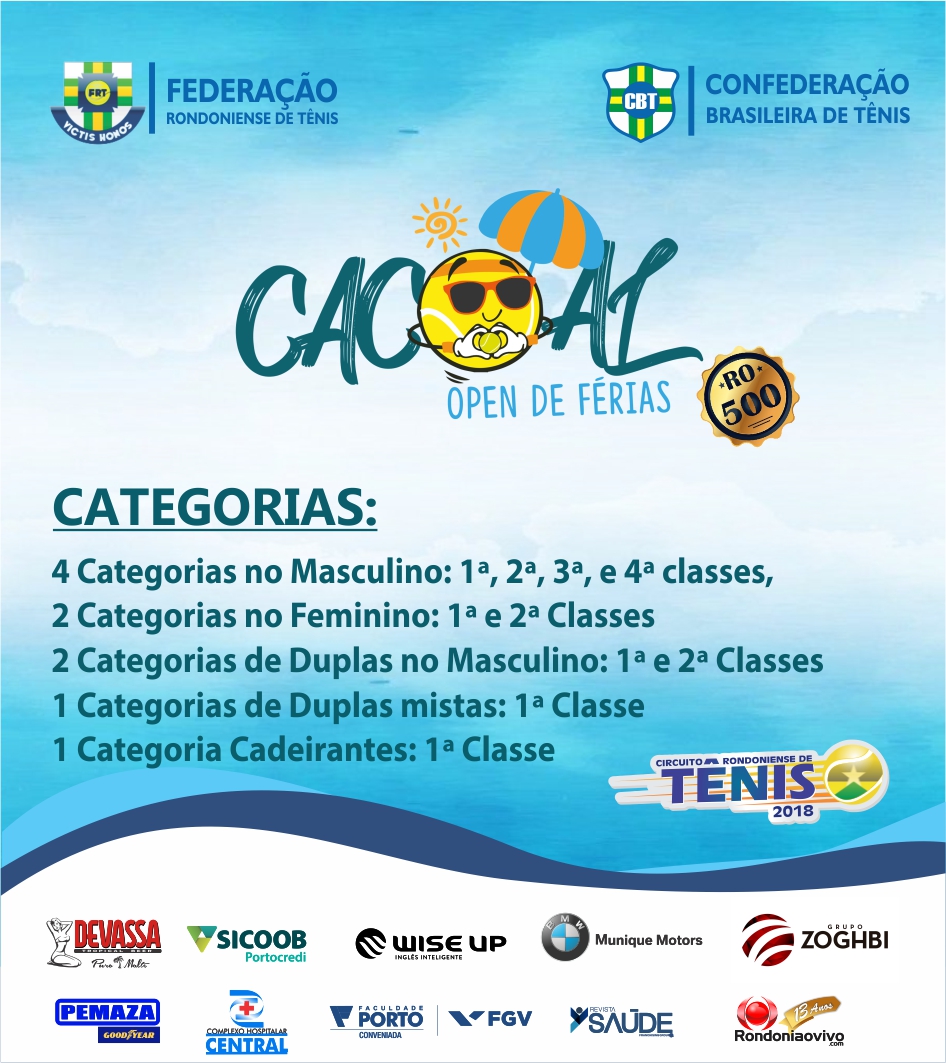 O interior sediara mais uma etapa do Circuito Rondoniense de Tênis 2018, o “Cacoal Open de Férias RO-500”, torneio que pela primeira vez faz parte do calendário oficial da Federação Rondoniense de Tênis.