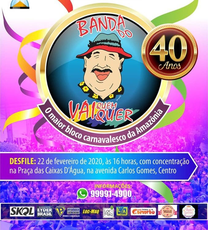 No carnaval 2020 a Banda do Vai Quem Quer vai comemorar os seus 40 anos de fundação, proporcionando aos foliões de Porto Velho o melhor carnaval da região norte. E neste ano, não poderia ser diferente e mais que especial. Será mais um ano de homenagens e de grandes comemorações para a BVQQ, que vem com o tema '40 anos de folia.'