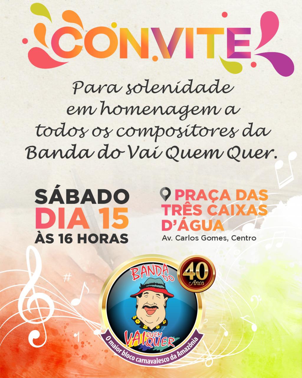 Neste sábado (15), a Banda do Vai Quem Quer vai homenagear seus compositores. Eles que fizem história nesses 40 anos de Banda do Vai Quem Quer, com as composições das suas marchinhas de carnaval.