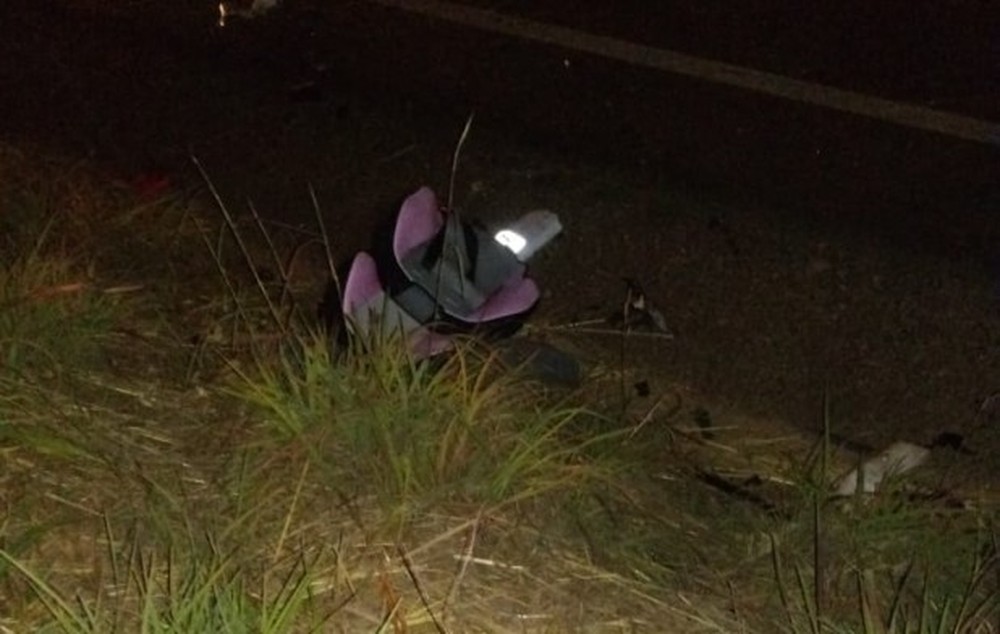Cadeirinha de criança ficou exposta na rodovia (Foto: Rondônia News/Reprodução)