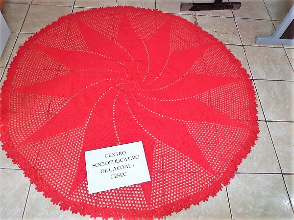 As oficinas de tapeçaria em crochê são ministradas pela agente de segurança socioeducativo, Katiane Ferreira Cardoso, que também conta com o apoio de todos os servidores da unidade, ao longo dos plantões. Ela relata que em pouco tempo já foram feitas 24 peças, entre tapetes grandes e as passadeiras menores. E que no desenvolver das oficinas, logo no início, alguns socioeducandos tiveram um pouco mais de dificuldade, mas aqueles que aprendiam mais rápido, passam o conhecimento aos iniciantes com mais dificuldade. “Eu vejo que a laborterapia ajuda no relacionamento entre eles, porque uns ajudam aos outros, e isso ocorre lá dentro do alojamento. Participar do projeto é um benefício para o comportamento e acalma a ociosidade deles, além de fazer renda para a família, pois podem vender os tapetes e reverter em produtos para eles, estimulando a própria família a trazer o material dos tapetes”, explica.