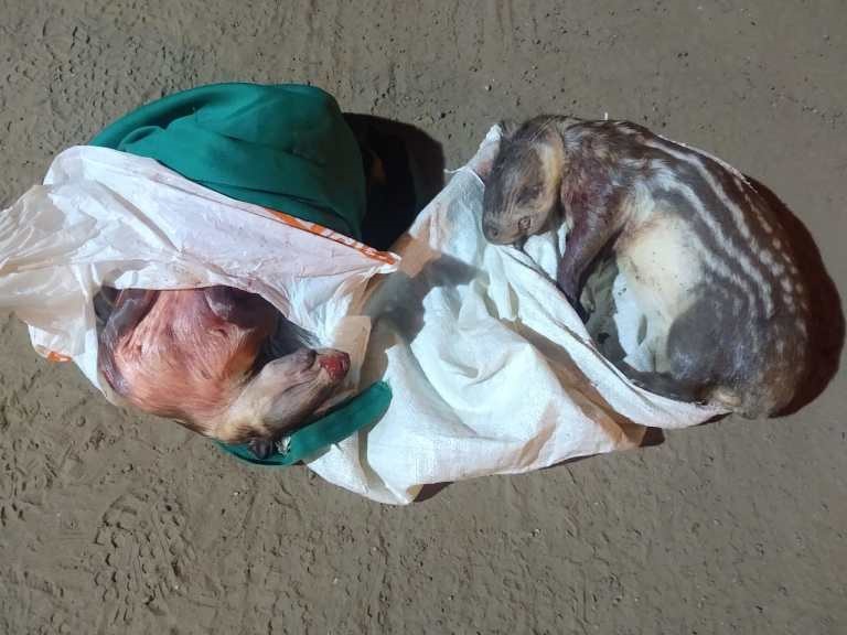 Na revista ao carro, foram encontradas 3 espingardas, 26 munições e 2 animais silvestres, popularmente conhecidos como “pacas”, sendo que ambos apresentavam ferimentos decorrentes de disparo de arma de fogo.