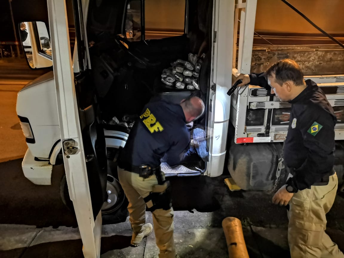 Em consequência do nervosismo apresentado pelo motorista, os PRFs decidiram realizar uma revista minuciosa no veículo, fato que resultou na localização, em compartimento secreto abaixo do banco do motorista, de 42,9 kg de substância análoga à maconha.