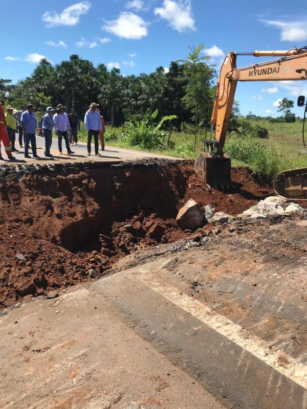 4) O DNIT já foi acionado e enviou ao local equipes de Ji-Paraná e Ariquemes. O fato já foi repassado para o Ministro dos Transportes. Em nota emitida pela ASCOM/DNIT foi noticiado que o Exército Brasileiro, representado pelo 5 BEC, avalia as condições de viabilidade e segurança para instalação de uma ponte metálica para restabelecimento emergencial do fluxo de veículos. Não obstante, uma empresa que realiza serviços de manutenção e conservação da rodovia foi acionada para iniciar imediatamente a execução de obras no trecho atingido.