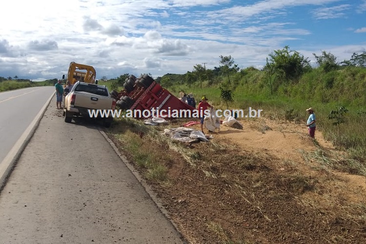 Segundo informações, a carreta seguia pela rodovia federal para descarregar no porto da Capital quando na altura do Km 395, próximo à divisa de Jaru e Ouro Preto do Oeste, uma falha mecânica fez com que o pino esférico rompesse e o semirreboque traseiro do bitrem capotasse às margens da BR.