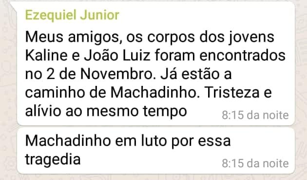Os corpos dos jovens Kaline Ramos e João Luiz Coronel foram encontrados na tarde desta terça-feira (28). Os dois jovens caíram na Cachoeira Dois de Novembro no Rio Machado na tarde do ultimo domingo (26) e estavam desparecidos.