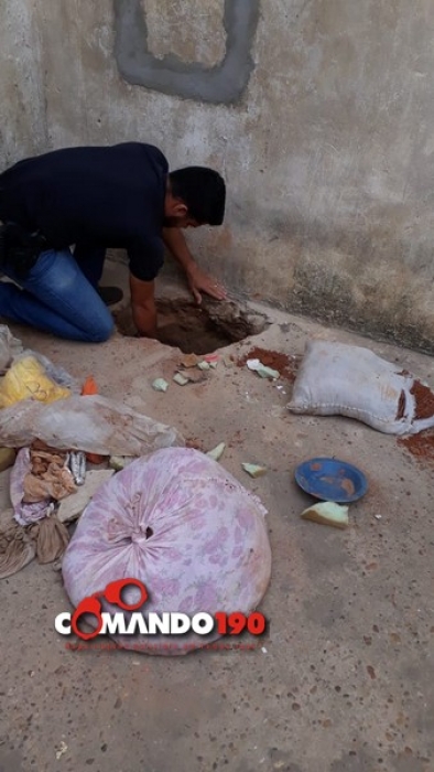 Dentro do buraco, os agentes localizaram drogas e celulares