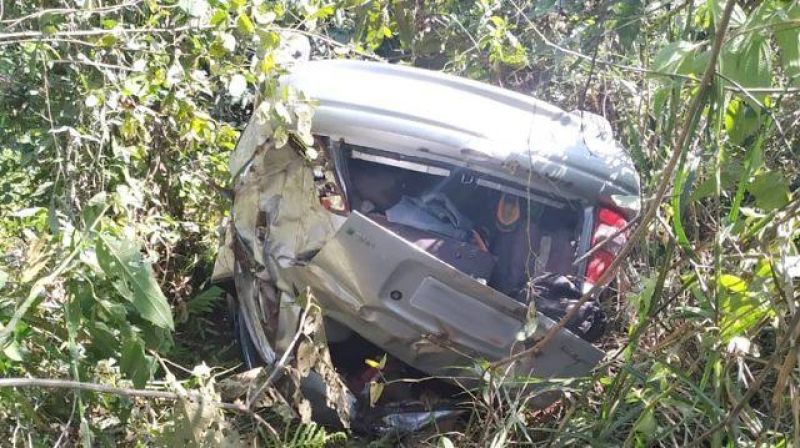 Veículo bateu no meio-fio, e caiu numa ribanceira à margem da rodovia que liga Alta Floresta a Cuiabá