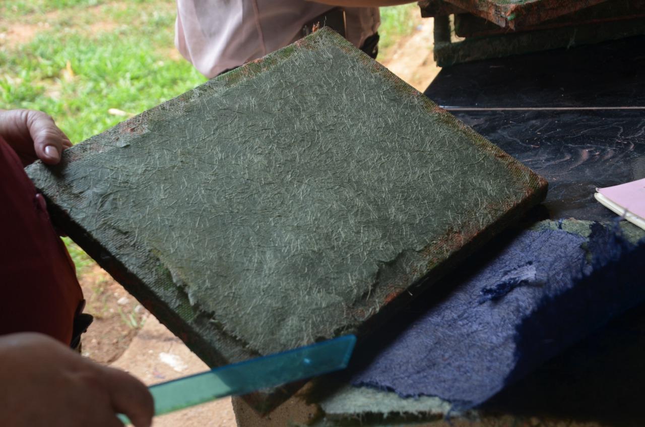 Posteriormente, a mistura é aplicada em uma tela e é levada ao sol para secar. Por fim, basta retirar o produto da tela com o auxílio de uma espátula ou régua, que o papel já está pronto para colocar a criatividade em prática.