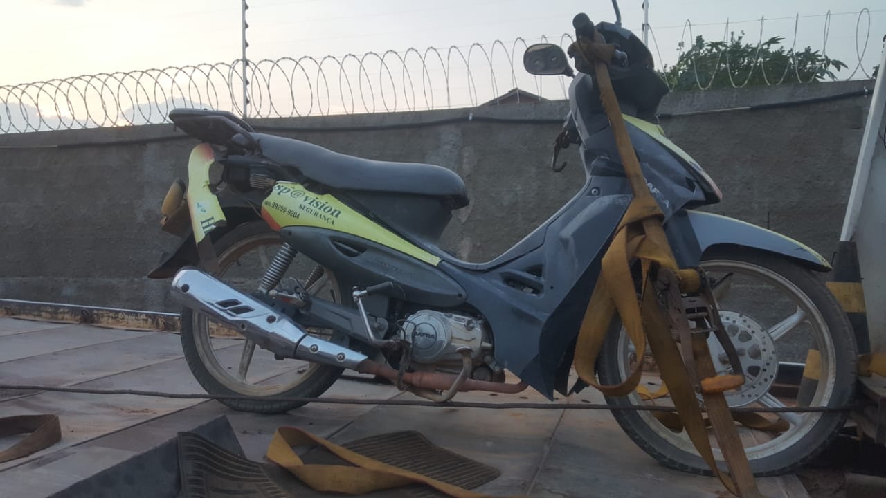Durante o procedimento de checagem foi constatado que a motocicleta Dafra encontrava se com sua documentação irregular, sendo então procedido a apreensão do veículo.