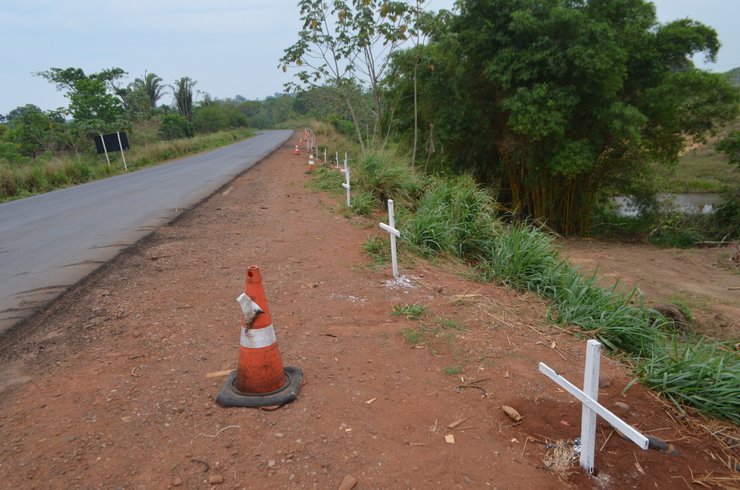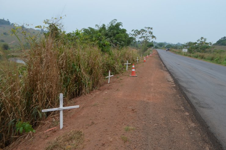 20 cruzes e uma faixa cobrando ação do DNIT, foram afixadas neste último sábado (21) na perigosa curva do km 434 da BR-364, que está localizada a aproximadamente 7,5km de Jaru, em direção a Ariquemes.