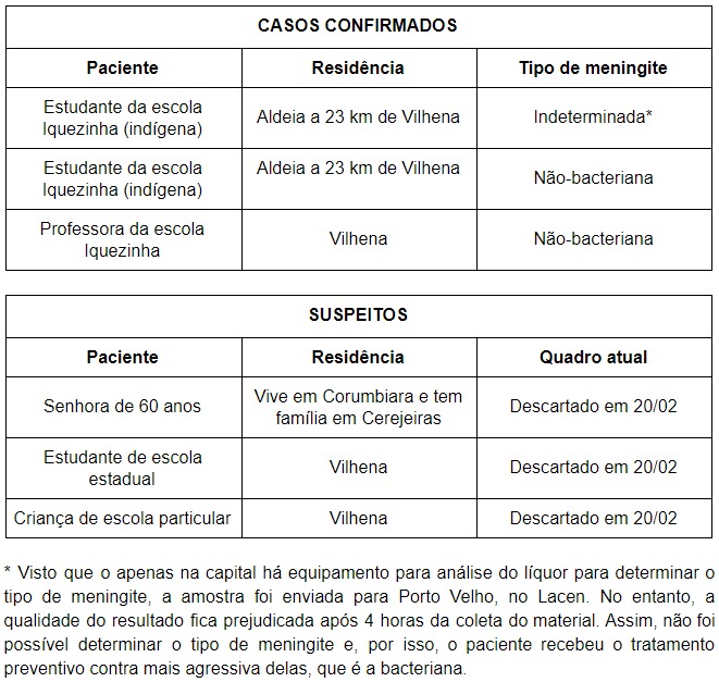 Os casos confirmados até o momento são de meningites não-bacterianas