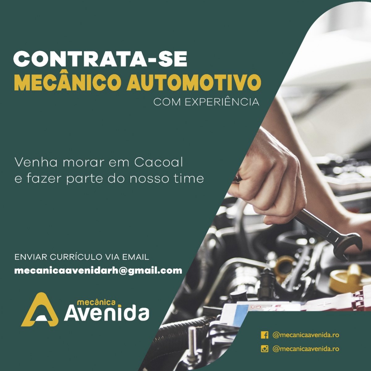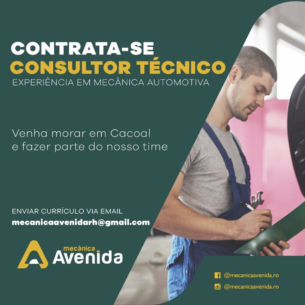 Indiretamente, cerca de 90 trabalhadores são beneficiados pela atuação da empresa em Cacoal, município no Centro do Estado de Rondônia. Aliás, desde a sua criação, no ano de 2010, a Mecânica Avenida apoia os sonhos de quem quer trabalhar como mecânico ou consultor técnico automotivo, inclusive para o primeiro emprego no setor.
